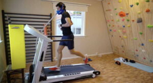 Měsíc před odletem také začal většinu dní běhat na běžícím pásu s výškovou maskou, aby simuloval nadmořskou výšku začínající ve výšce kolem 4 000 metrů a postupující do výšky kolem 6 000 metrů (maska ve skutečnosti dodává vzduch s nižším než normálním obsahem kyslíku, přičemž používá stejný generátor jako výškový stan. Není to tedy jeden z těch jednoduchých respirátorů, které pouze omezují proudění vzduchu, aby se hůře dýchalo.) Zpočátku se jednalo o hodinové lehké běhy, ale později přidal i trénink vyšší intenzity.